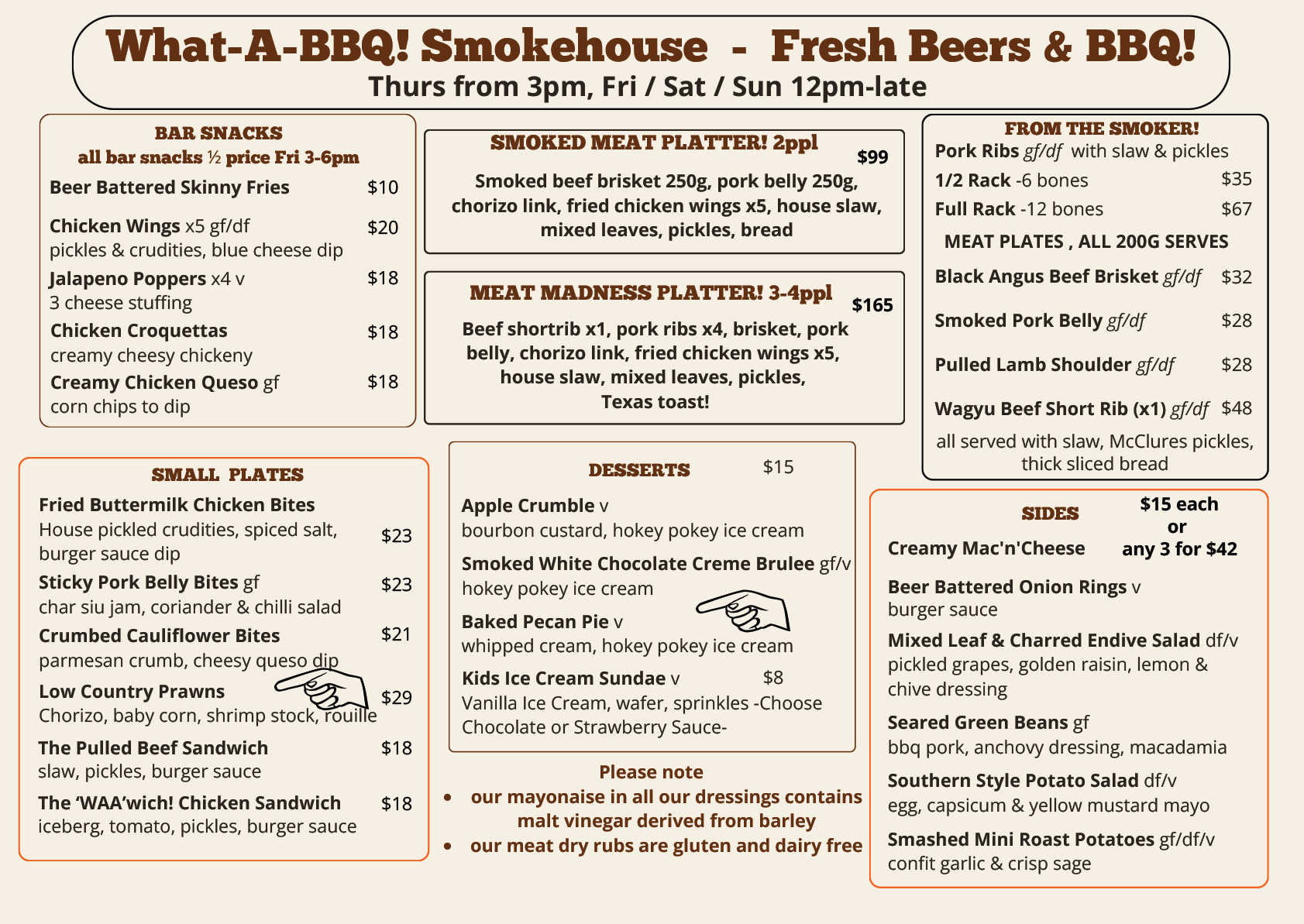 What-a-BBQ! Smokehouse, West Aucklands hidden gem with seating for up to 150 guests with a fully covered outdoor courtyard. Plenty on onsite & street parking is available. Our 2 tonne smoker runs daily so pop on down and have a chat with our pit-masters to see what they’re running.  Our What-A-BBQ! Catering side also operates some of New Zealands biggest mobile bbq smokers. Looking for us to come to you and cook for your next event? Just talk with our friendly staff. MAKE A BOOKING TODAY!